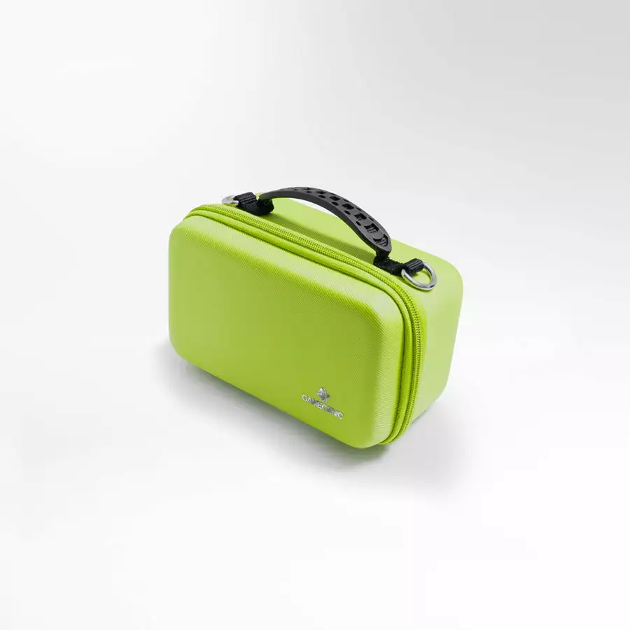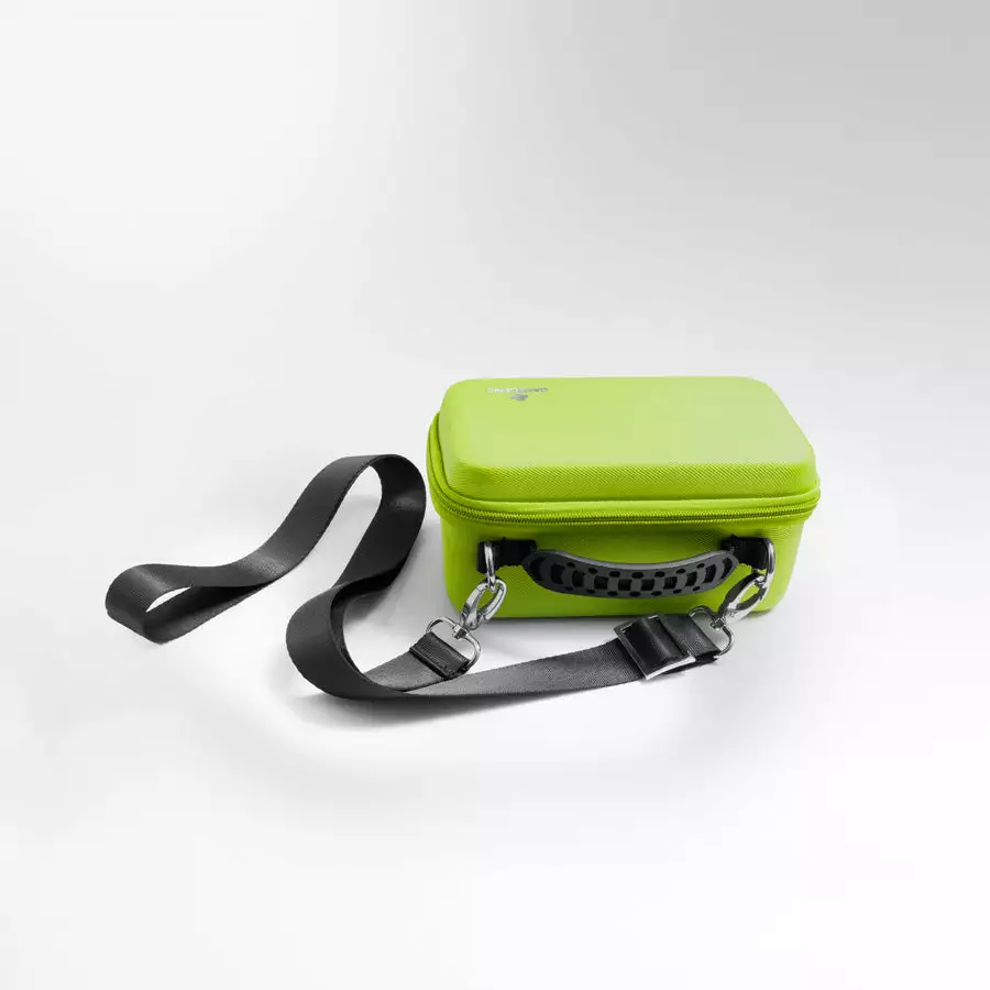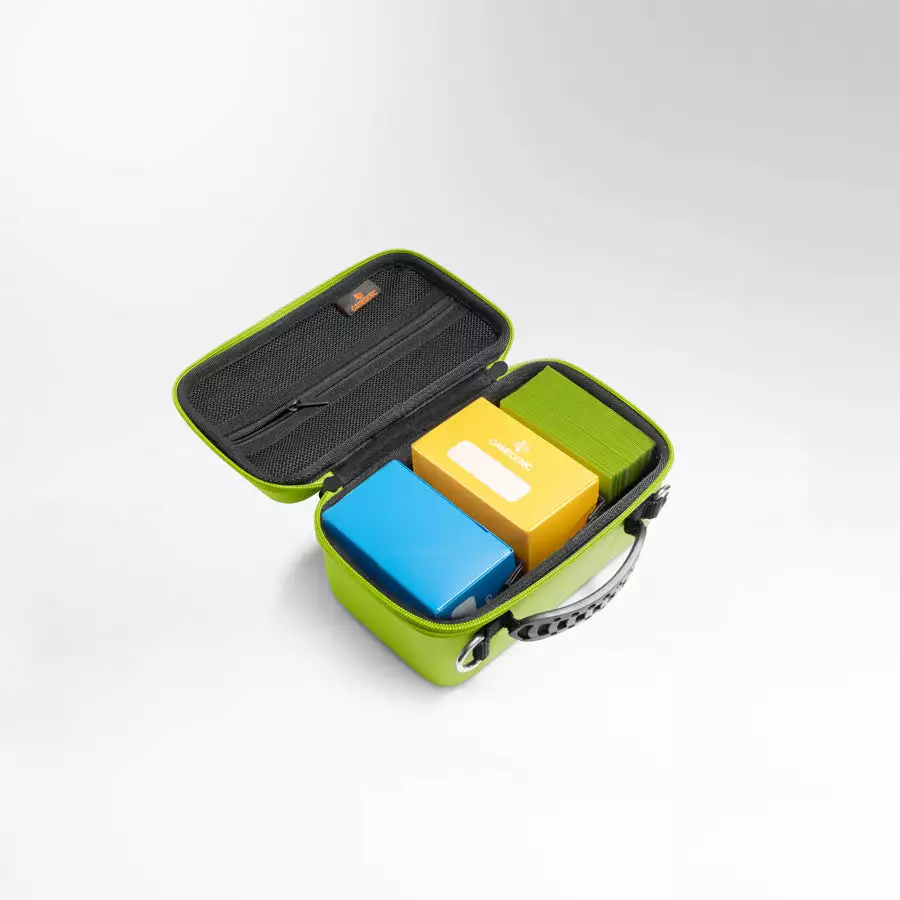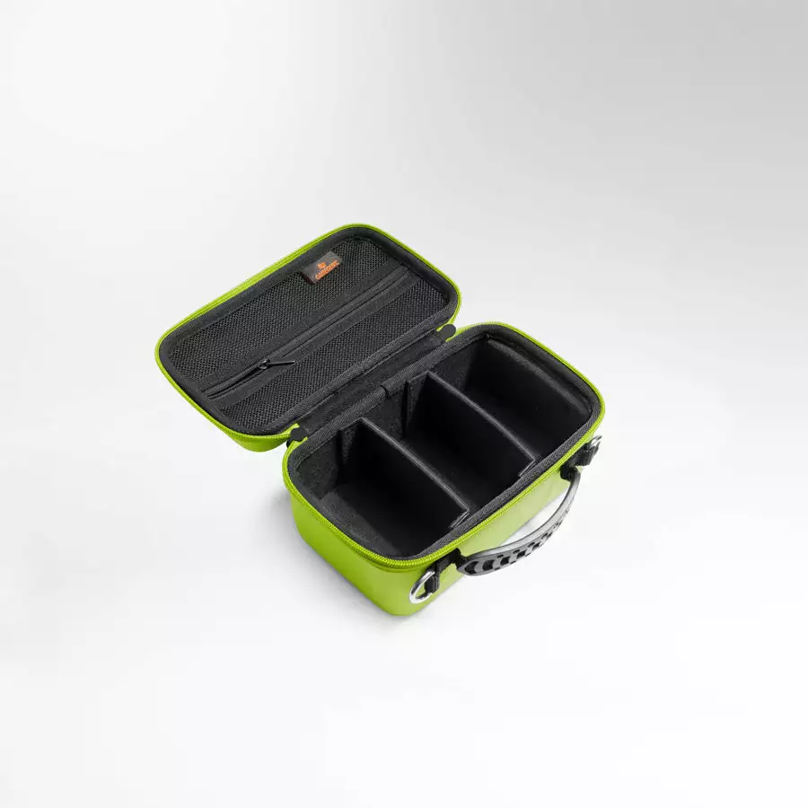 The Game Shell is a portable case, perfectly sized for a wide variety of usages. It fits up to 250 double-sleeved cards, tokens, dice or even complete small games. The outside material comes in durable and resistant nylon with a premium structure. It boasts a reinforced handle and two zippers, hidden and protected by the outer material. On the inside, the Game Shell provides an accessories compartment and two adjustable dividers. This enables a completely free setup, adjustable to your needs and preferences.