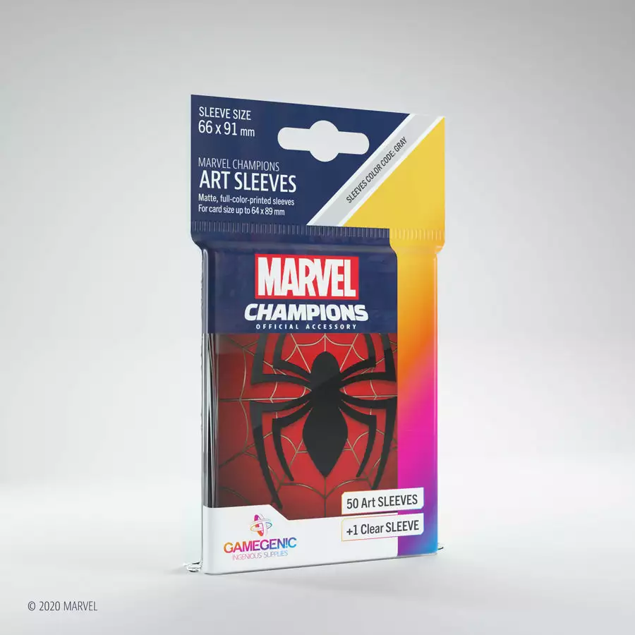 The first official MARVEL CHAMPIONS art sleeves. These high-quality, matte, full-color printed, and officially licensed card sleeves are the eye-catcher for every hero deck. These borderless printed sleeves are optimized in size for MARVEL CHAMPIONS and other TCG, LCG, and provide a great shuffle feel. They come in 9 different designs and are perfect for double-sleeving. 50 art sleeves + 1 clear sleeve (for the hero/villain) per pack.