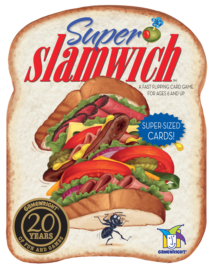 Slamwich is a real-time, pattern recognition card game such as Twitch, Set, and Bongo, with cards that are die-cut to resemble slices of bread topped with sandwich items, sandwich thieves, and sandwich munchers.