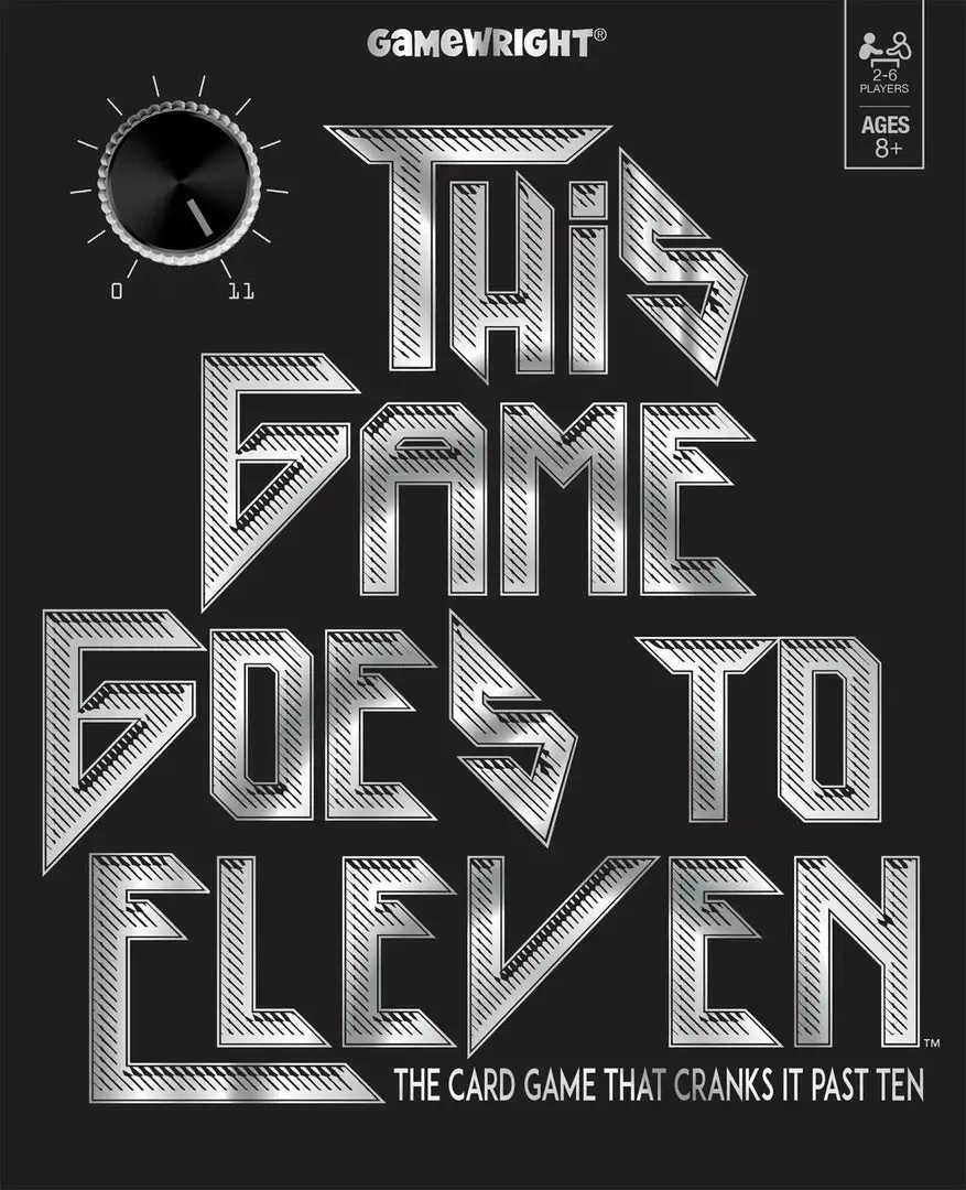 In This Game Goes to Eleven, named after a joke in the film Spinal Tap, players play number cards from their hands into the center pile, seeking to make the pile sum to 11. If they are able to get to exactly 11, they can pass the stack off to another player. If, however, they are forced to play a card that brings the total over 11, they have to take the entire pile themselves. Players race to be the first one to be left without any cards.