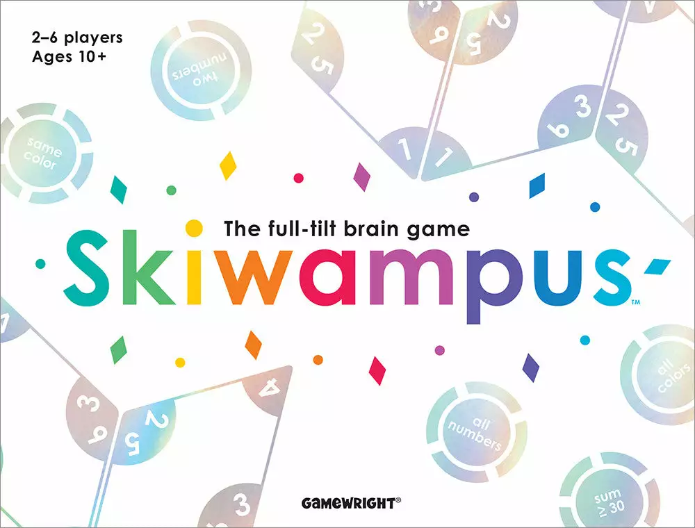 Outmaneuver your opponents in this full-tilt action brain-builder! Arrange your tiles in Skiwampus so that the corners connect to form an array of patterns, whether most colors, all numbers, three of a kind, or more. But work quickly because everyone plays at the same time! It’s a geometric jam that requires sharp eyes, quick thinking, and nimble hands. Let the wild Skiwampus start!