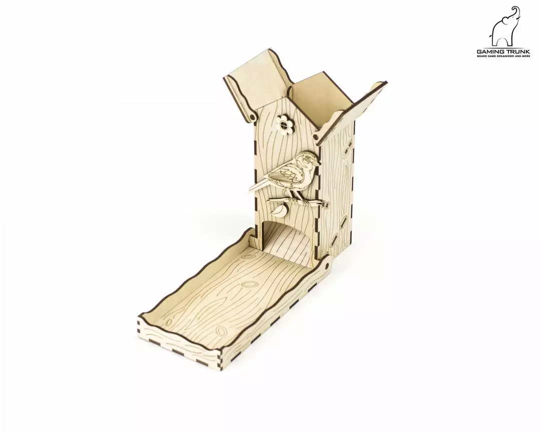 Chickadee Dice Tower is a small foldable dice tower. It fits standard size d6 dice. It can be used as a standalone dice tower or as a replacement for the dice tower in Wingspan from Stonemaier Games. It can be stored in the game box instead of the included tower. Our Wings organizer supports this dice tower.