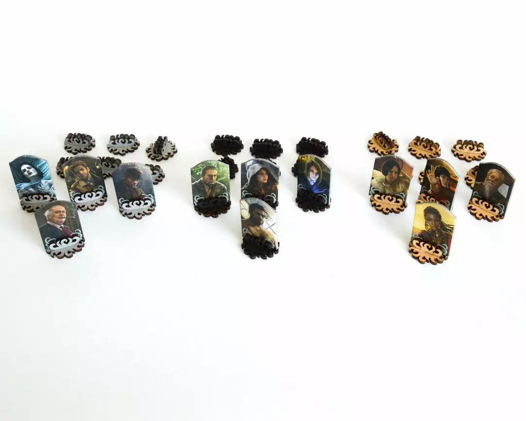 This Investigator stand securely holds Investigator tokens upright, so players can clearly see the Investigator stats on the board.
