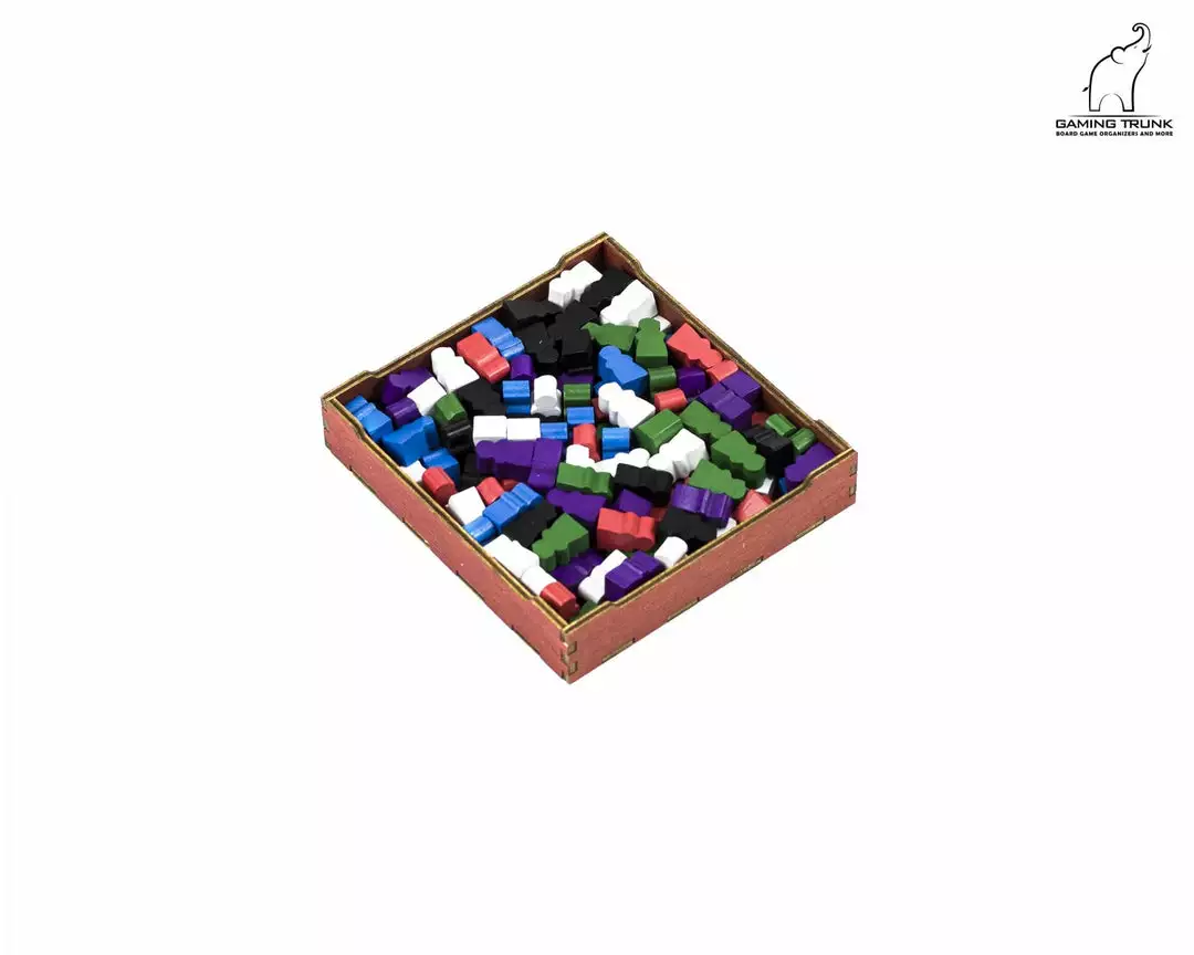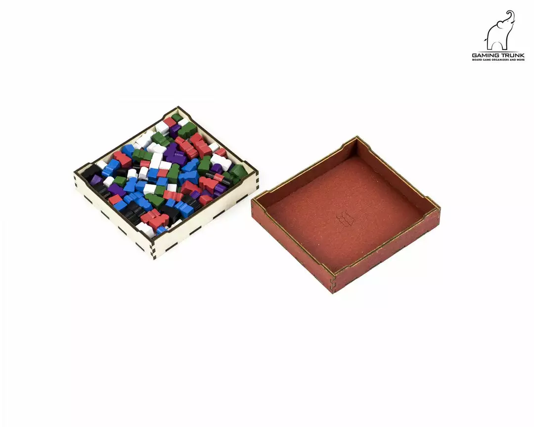 - 12 Removable trays: 2 Big card trays, 4 Small card trays, 1 Workers tray, 1 Coin tray, and 4 Player tokens tray