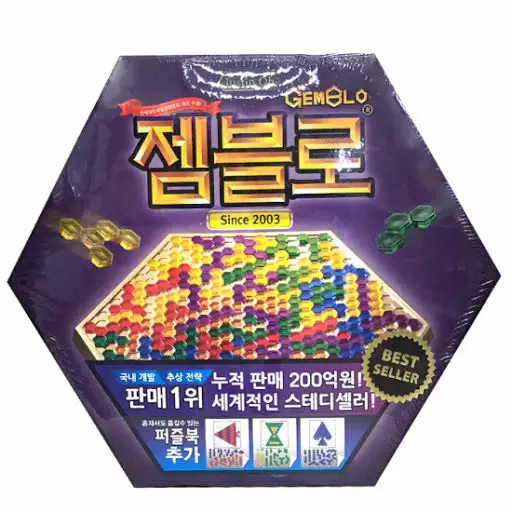 Gemblo is an abstract strategy game with translucent, colored pieces, each of which is made up of one to five hexagons. Each player has an identical set of pieces in a unique color. The goal is to get rid of all of your pieces by placing them on the hexagonal game board. Each piece that you place after the first cannot touch previously-placed pieces of the same color; instead each piece must be a distance of “1” from another piece of the same color, where 1 is the length of a side of one of the small hexagons. Another restriction is that the distance being measured can’t directly cross another player’s piece, but it can lie at the junction of two pieces. Once all players have placed as many pieces as they can, they count the number of hexagonal units in the pieces they couldn’t place, and the player with the lowest score wins.