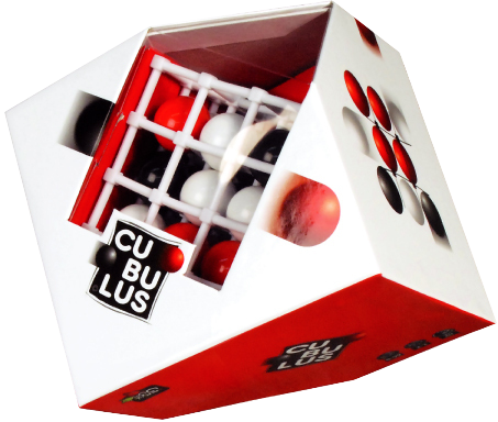 On a turn, you add a colored ball to the 3x3x3 playing area by pushing it into place – possibly pushing other balls out of the way – or change the order of balls in a completed row by pushing them one space, then reinserting the ball pushed out of the row. With two players, one color of balls is neutral. Keep your eyes on all sides of the cube to prevent others from squaring off for the win.