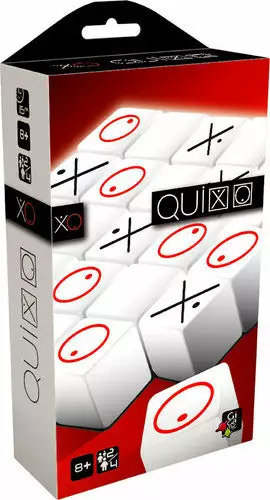 Quixo bears a superficial resemblance to Tic-Tac-Toe – with one player being crosses and the other circles, and with both trying to create a line of their symbol – but that’s where the resemblance ends. The pieces in the game are cubes that have a circle on one side, a cross on another, and blank faces on the other four; to set up the game, players place the 25 cubes with blanks face-up on the 5×5 grid in the game board.