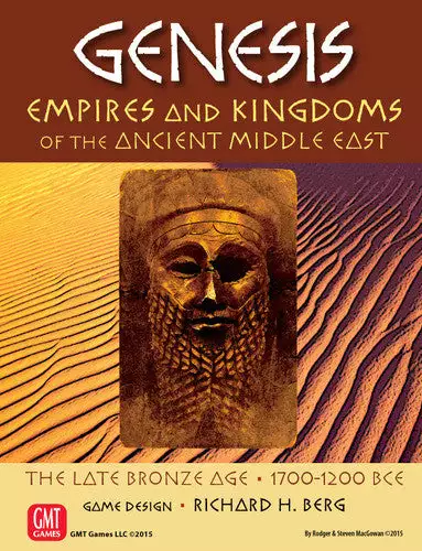 Genesis is a game covering the turbulent Late Bronze Age in the Middle East, where kingdoms rose and fell while establishing many of the systems and ways of life that underwrite Western Civilization. Genesis is not a simulation of events during this era. Much like its ancestor game, Pax Romana, Genesis is a game that provides the players with the historical dramatis personae and allows them to forge their own empires. It also has a great emphasis on the control of the important trade routes and commercial centers and the building of the spectacular monuments these civilizations left for posterity and wonder. Genesis can be played by from one to five gamers.