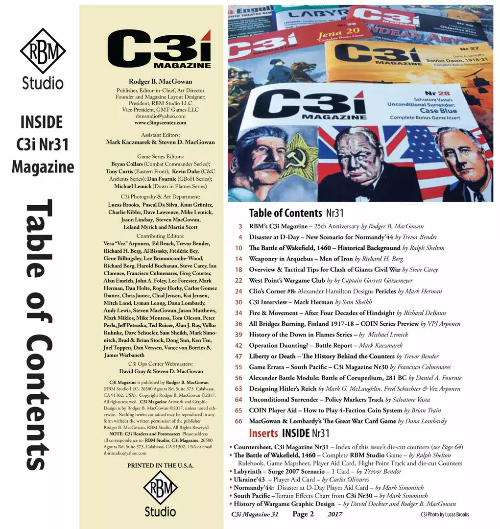 - Features the standalone historical wargame “The Battle of Wakefield” by Designer Ralph Shelton (including map and counters)
