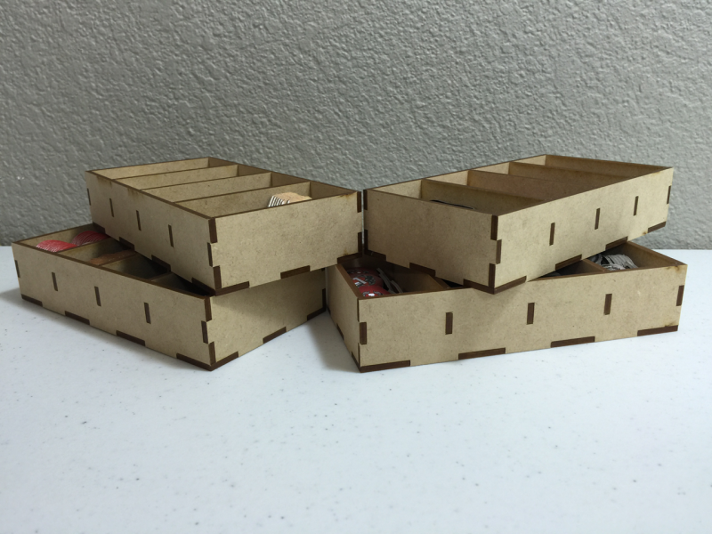 Our insert for 7 Wonders stores everything through Babel. It provides a card storage lane with seven (7) acrylic dividers that can accommodate sleeved cards, four (4) removable bit trays with four (4) compartments each, room to store all of your Wonder boards, three (3) scorepads, Babel board, Babel tiles, etc. Everything has its place in our insert.