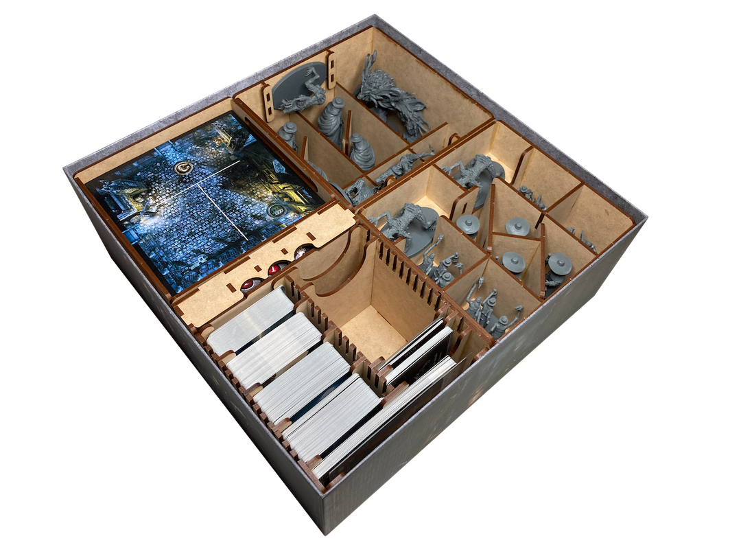- BLOODB-002 – Additional card and tile storage for expansions and provides storage for chests, lanterns, and 8 small minis. (Cainhurst or Forbidden expansion box)