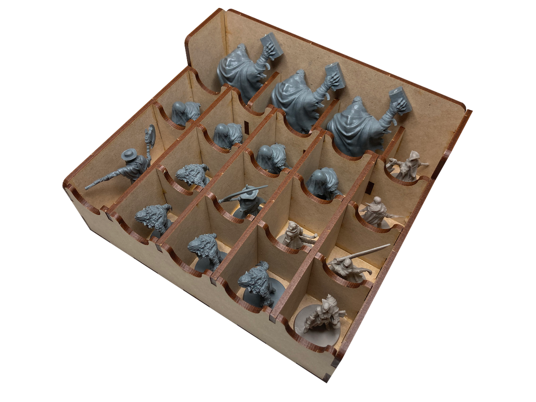 - BLOODB-005 – Provides storage for large minis from Upper Cathedral and Hunter’s. Also provides space for 19 small minis. (Hunter’s or Upper Cathedral expansion box)