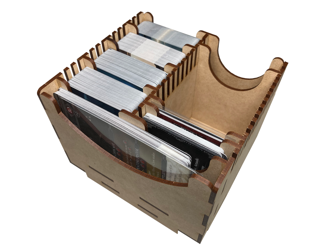 - one (1) removable small card tray supporting sleeved/unsleeved cards