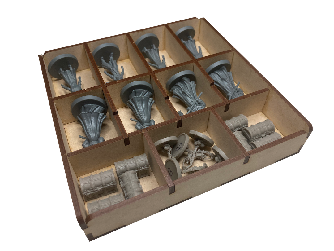 - BLOODB-007 – Provides storage for large minis from Yahar’Gul, Byrgenwerth, and Mergo’s. (Mergo’s, Yahar’Gul, or Byrgenwerth expansion box)