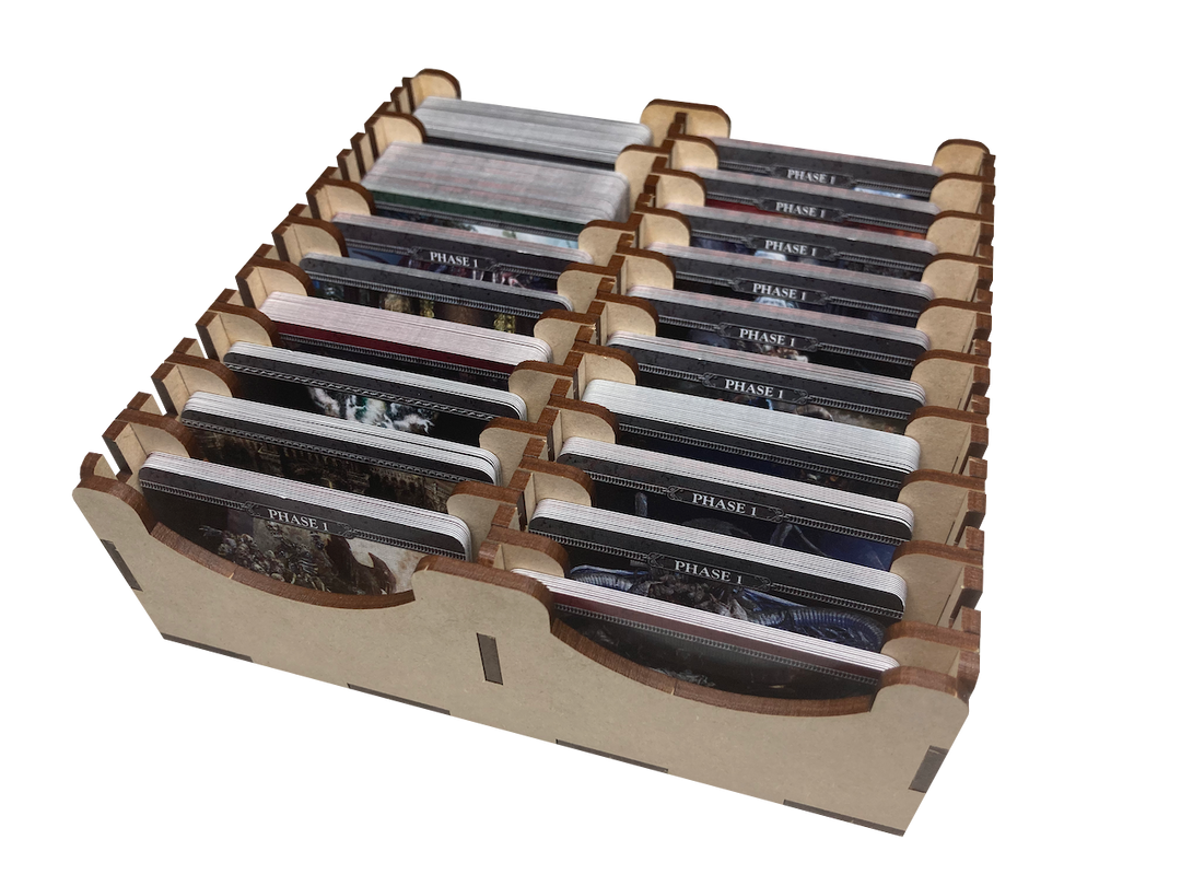 This Go7 Gaming organizer for CMON’s Bloodborne™ offers six removable trays, providing storage for your small/large/jumbo cards, map tiles, and small minis. This solution is designed to store the expansion cards and map tiles.This solution fits into the Cainhurst or Forbidden expansion box.