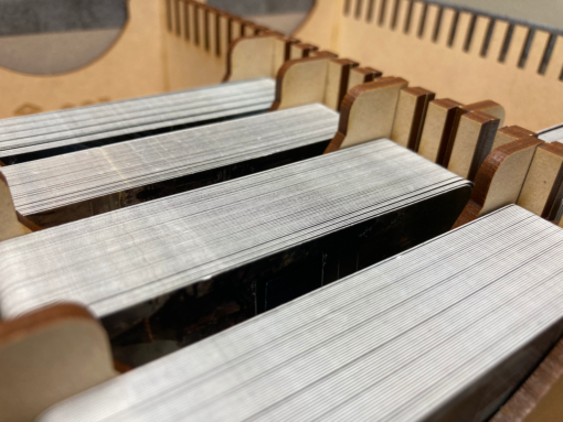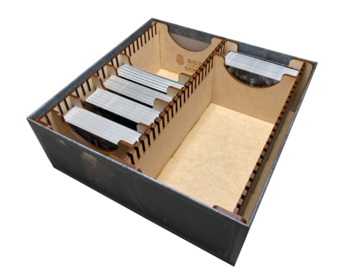 This Go7 Gaming organizer for CMON’s Bloodborne™ offers a single card tray organizer with two lanes.  This solution fits in a small expansion box such as Mergo’s, Yahar’Gul, and Byrgenwerth.