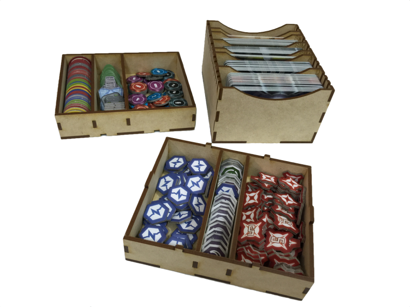 - play and setup tokens – two stackable trays