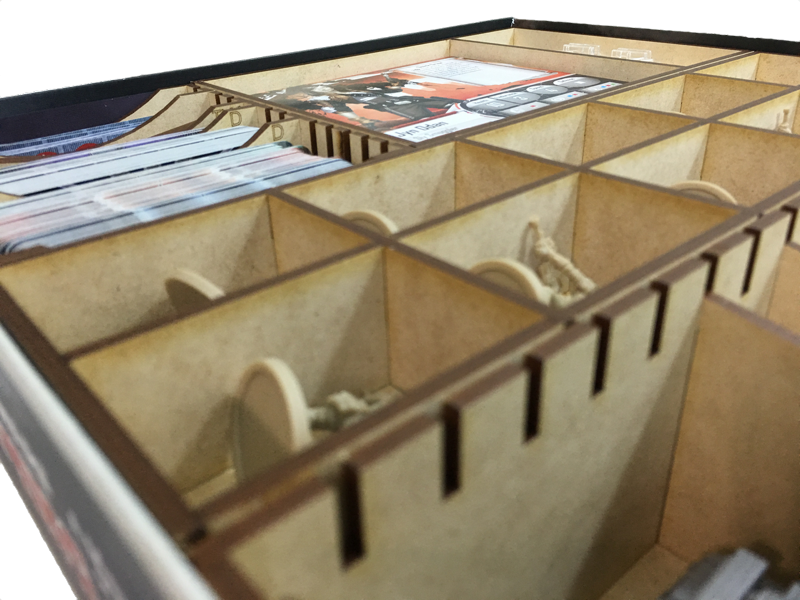 - This insert provides seven (7) removable trays. There is clearance at the top for your rulebook.