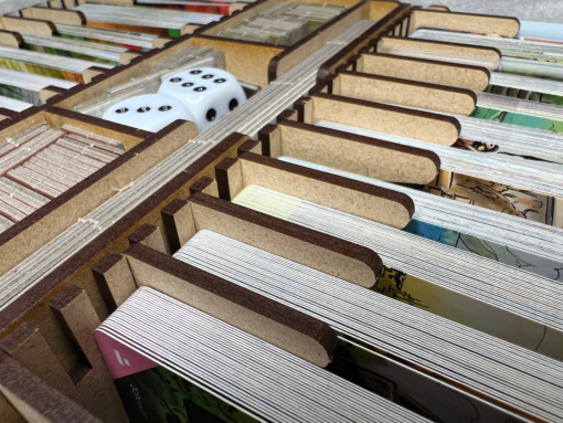 The Go7 Gaming storage solution for Imperium: Classics and Imperium: Legends provides card and token storage across six (6) removable trays.  If you sleeve, one organizer can store either game.  If you don’t sleeve your cards, one organizer can provide storage for both Classics and Legends (or two copies of one of the games), but with a single copy of the rulebooks.