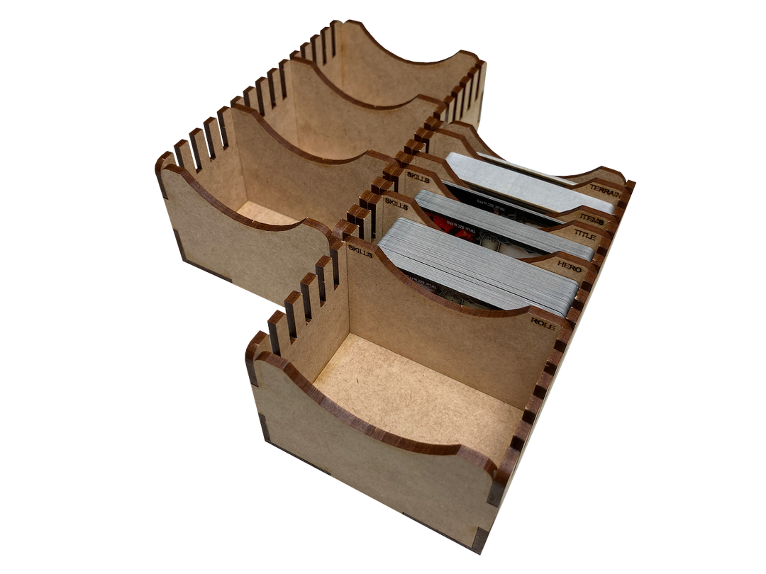This kit provides five (5) etched dividers for card types: item, terrain, hero skills, role skills, and title skills. Â There are also two (2) blank dividers provided.