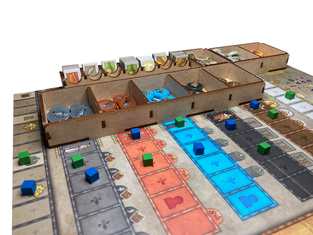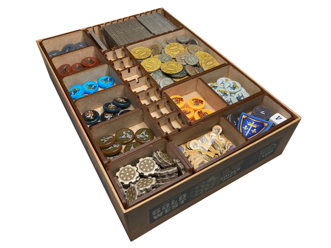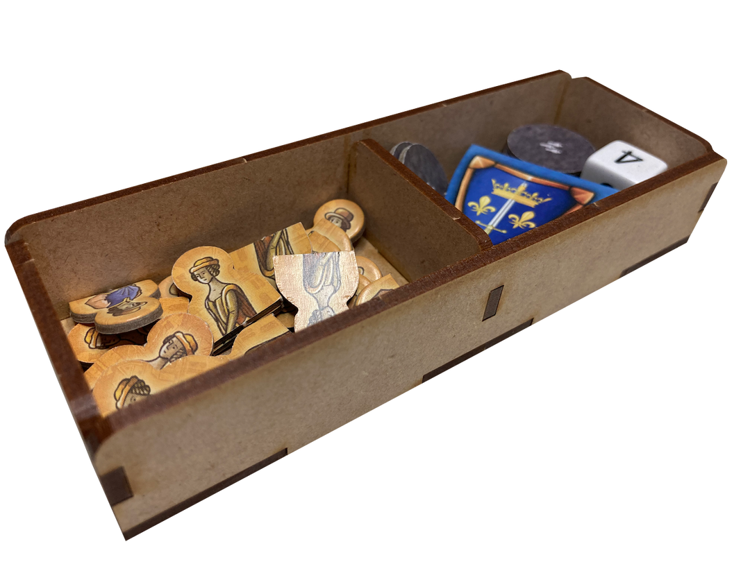 The Go7 Gaming organizer for Orléans provides a total storage solution for the TMG retail/deluxe version of Orléans, expansions, plus promos. Our solution is designed to store Orléans standard components, but can accommodate BGG resin character tokens or the Orléans Deluxe components from the KS and can be stored in the base game box (TMG edition), Invasion box (TMG edition), 2014 Deluxe box (TMG KS).