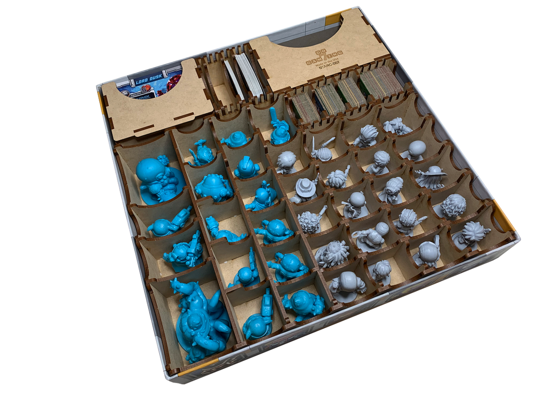 This Go7 Gaming organizer for the Starcadia Quest large expansion boxes provides a storage solution for large/medium/small cards (sleeved/unsleeved), thirty-six (36) minis, 3 campaign pads, and additional upgrade tiles from the various expansions and bonus content.
