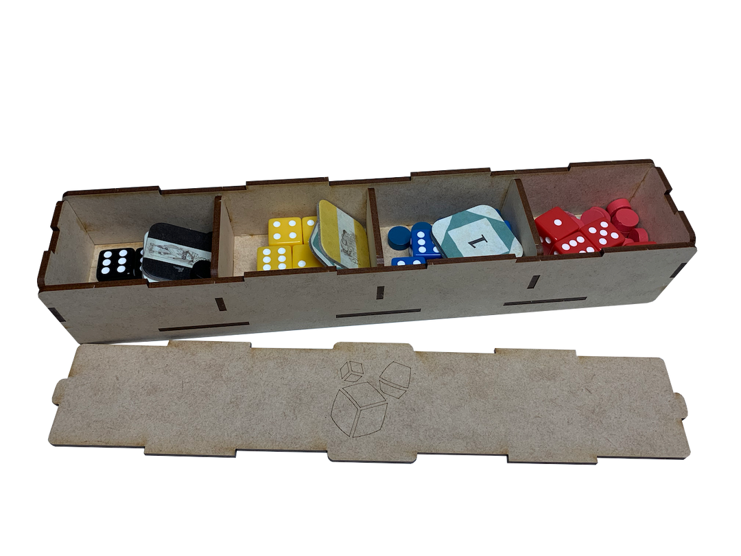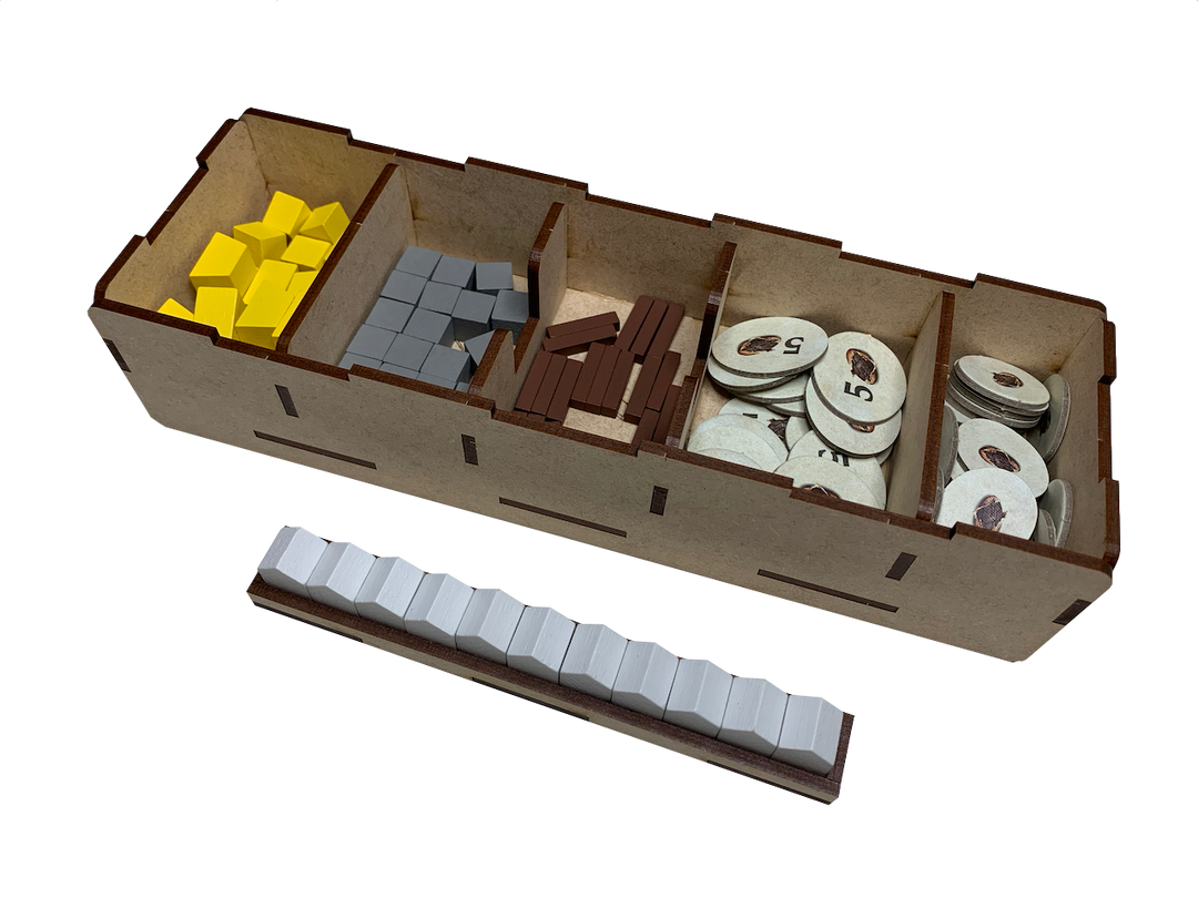 Our storage solution for Teotihuacan includes six (6) removable trays and is intended to be placed inside the publisher’s game box. Our solution provides storage for all base game components with room for growth.