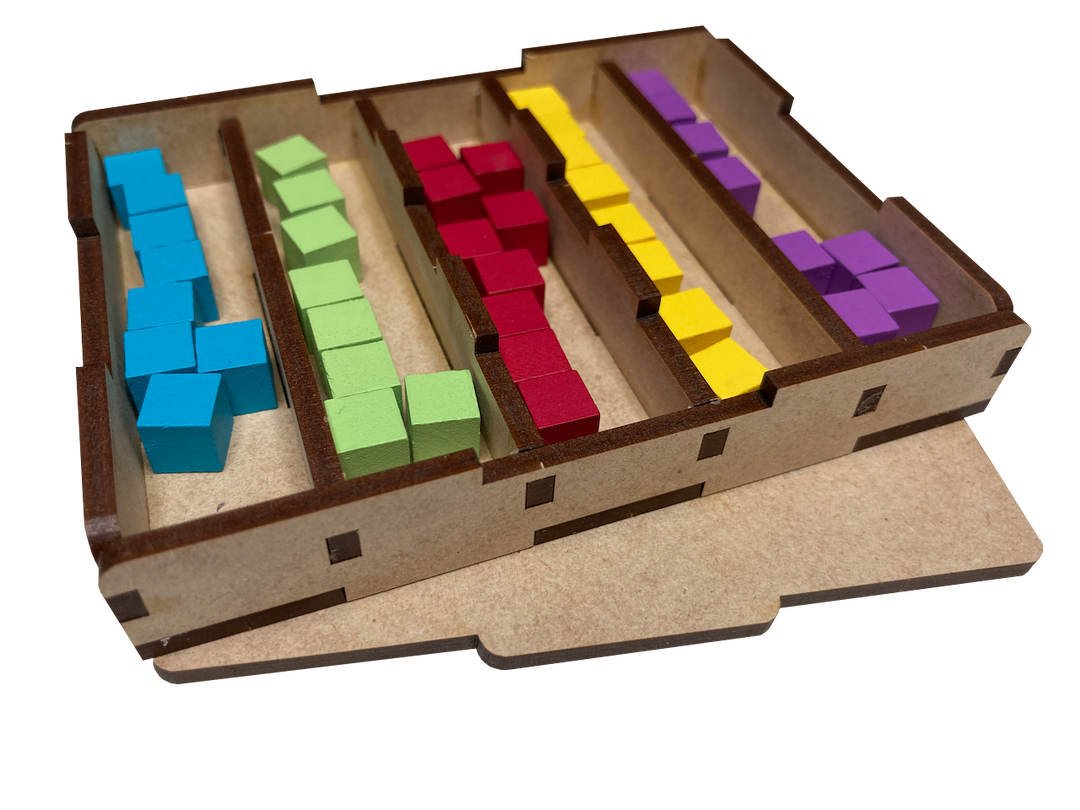 Our design utilizes the birdhouse to store the dice and the small cardboard tokens.