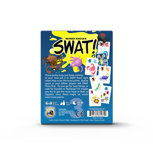 Set Up Box Edition- Those pesky bugs just keep coming at you! Â Your job is to SWAT them right when they score the most points. Â But be quick or your fellow players will SWAT them first. Â Do you go for Sure Stings, or wait for Double-or-NoStings? Or maybe you try to get the most Swat-or-Nots or Zappers, since these can be worth even more points.