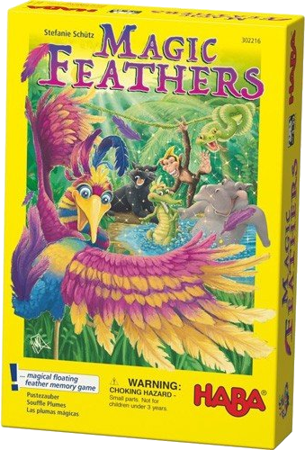 The jungle is in disarray! All the animals are running around the dense jungle looking for the partners they lost while playing. Only the colorful magic bird soaring high over the treetops has a good view. His magic feathers float gently down into the jungle and enchant the animals that they touch. This helps the animals find their partners faster. No animal wants to be alone for long in the dense jungle. The magic bird will help players quickly reunite all of the animal pairs. The player who reunites the most matching animal pairs becomes king of the jungle and can, at the end, decorate themselves with the most beautiful Magic Feathers.