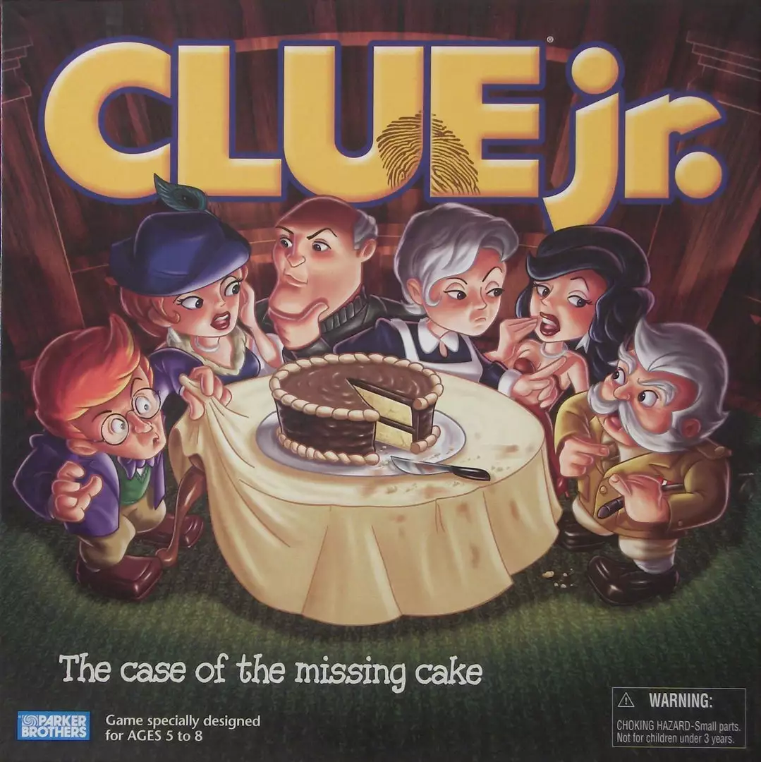 Instead of discovering who killed “Mr. Boddy,” players have to discover “Who ate the cake?” Players have to discover who ate the cake, what time the cake was eaten, and what drink, was eaten with the cake. The mechanics are also simplified for this children’s version of Clue, but is still very similar to Clue.