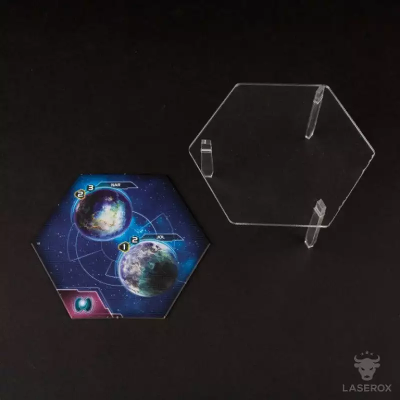 The Fleet Movement Stands are designed for use with a variety of outer space related board, and miniatures, games such as the Twilight Imperium™ or Eclipse™. These clear acrylic stands look awesome and allow you to see thru the stand to the board below. Functionally, they allow you to quickly move your space fleets around the board which saves time. Furthermore, they organize and differentiate your units so you can easily identify what game pieces are in space, and what units are on planets.