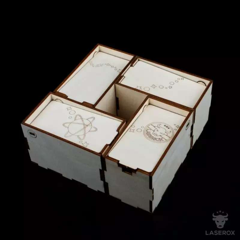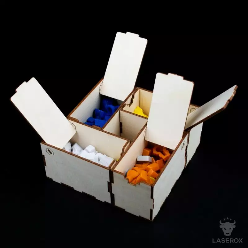 - a box for each player with a hinge door and unique engraving