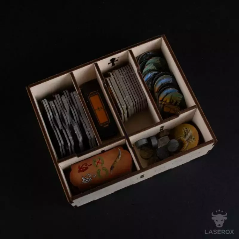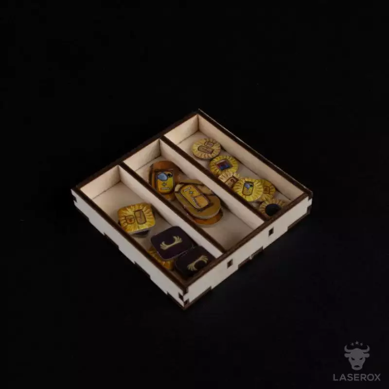 This organizer was designed to fit Kemet, Kemet: Ta-Seti and Kemet: Seth inside the original game box.