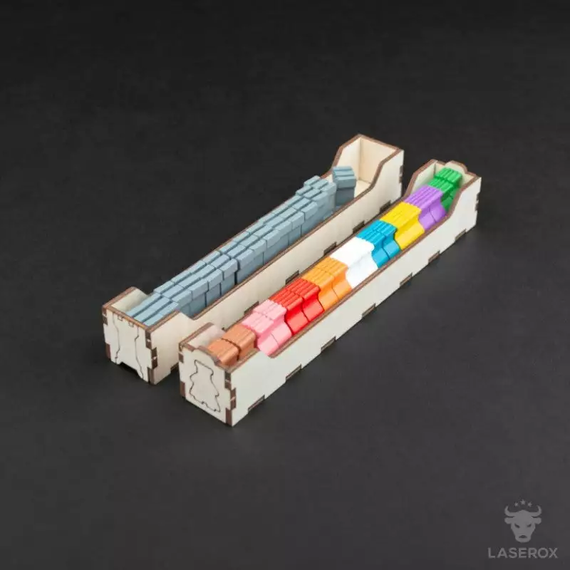Build up the most prestigious kingdom by claiming wheat fields, forests, lakes, grazing grounds, marshes, and mountains. Your knights will bring you riches in the form of coins — and if you make sure to expand the towns on your lands, you will make new buildings appear, giving you opportunities for new strategies. You may win the Queen’s favors … but always be aware of the dragon! Our Queendomino insert was designed to hold the Queendomino and Kingdomino base game and the expansion in one box. It saves you place, and you can play the game in 5 minutes.