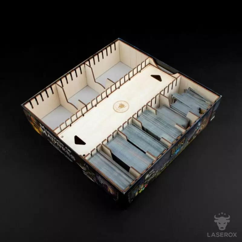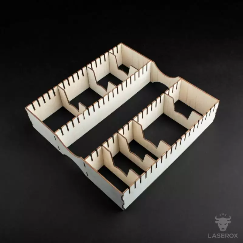 Designed for the regular game boxes with inner dimensions of 286x286x66mm. (Example: Dominion, Eldritch Horror, Colony…)
