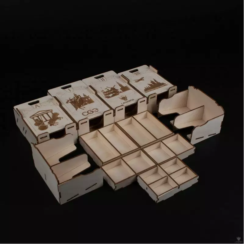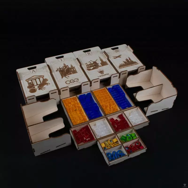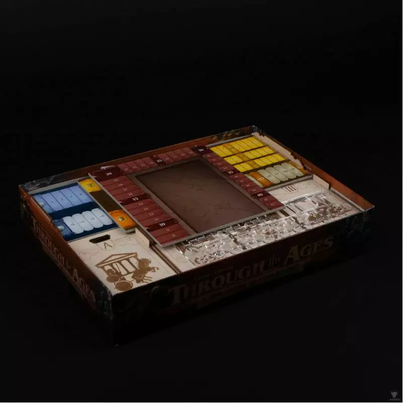 Wander through the Ages and make sure, your cubes and workes are have a firm ground. Our organizer designed to fit the new edition of Through the Ages from Czech Games will make sure that you have everything neatly stored.