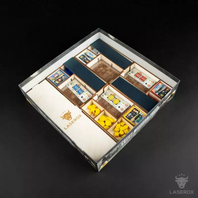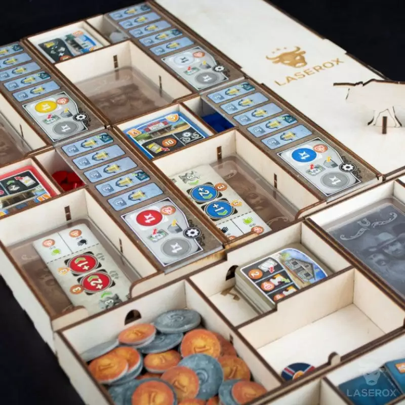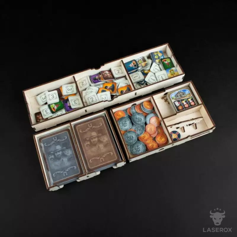 America in the 19th century: You are a rancher and repeatedly herd your cattle from Texas to Kansas City, where you send them off by train. You not only have to cleverly manage your heard, but find also a good solution how to store all components and the expansion in one box neatly.