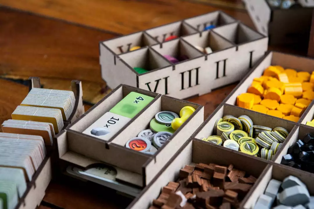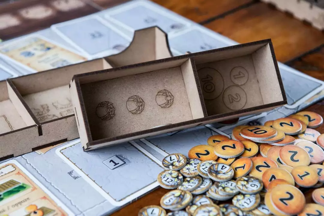 • 1x resources box (11 spaces for all resource types);