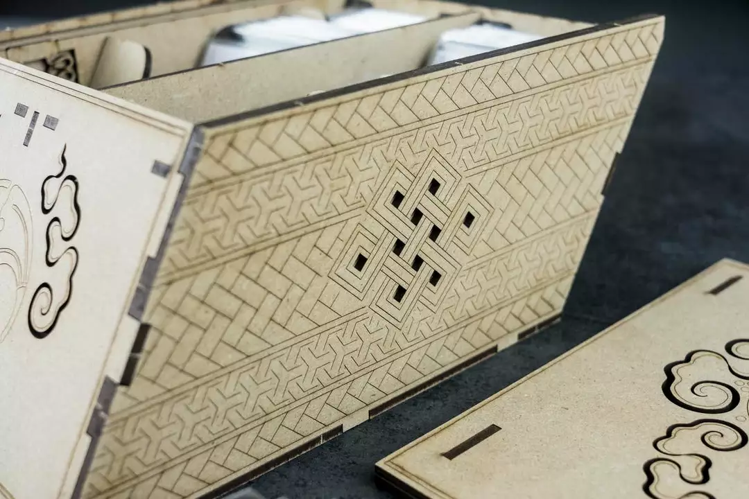 • 1x card holder with removable dividers, which can be placed in 16 different positions. Capacity: unsleeved cards 660 cards; 40 micron sleeves (eg. Mayday) 560 cards; 60micron sleeves (eg. Sapphire) 500 cards; 100 micron sleeves (eg. Dragon Shield) 380 cards (The capacity is approximated and may vary depending on the thickness tolerance of used sleeves. The actual results may be different from the above);