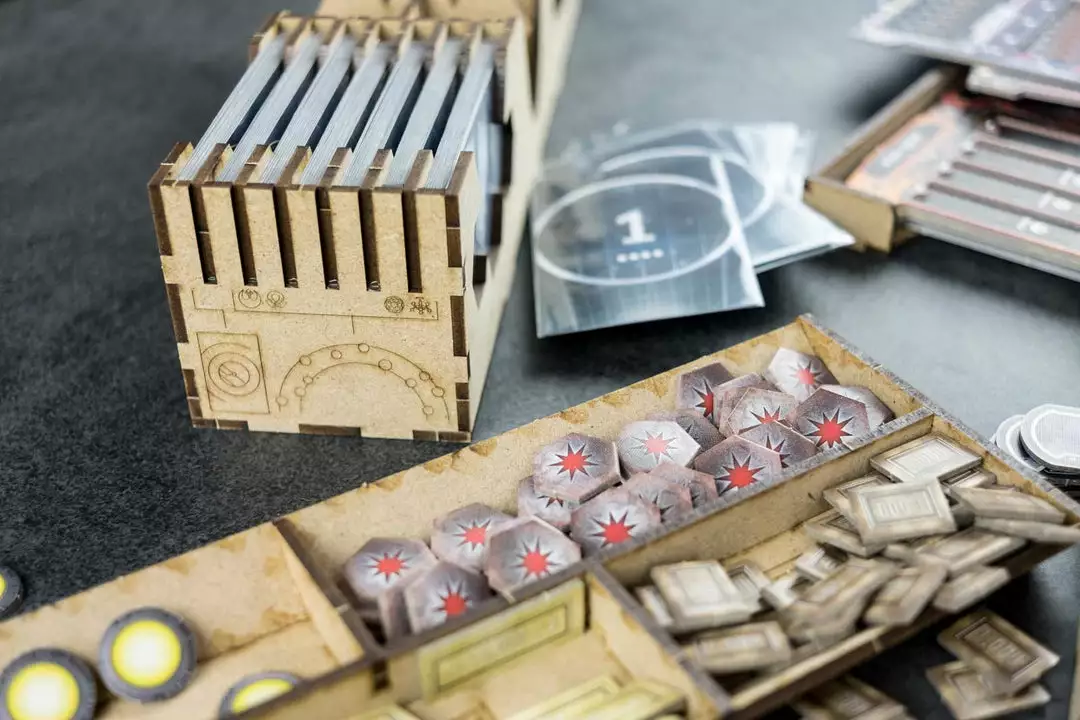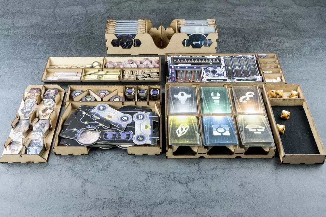 • 1x tray for player boards and ships with slots for pins and affiliate tokens.