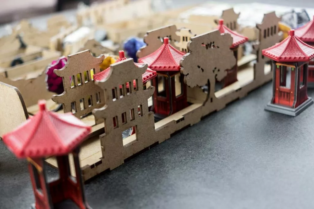 • 1x decoration box, with slots for pagodas, bridges and trees.Â