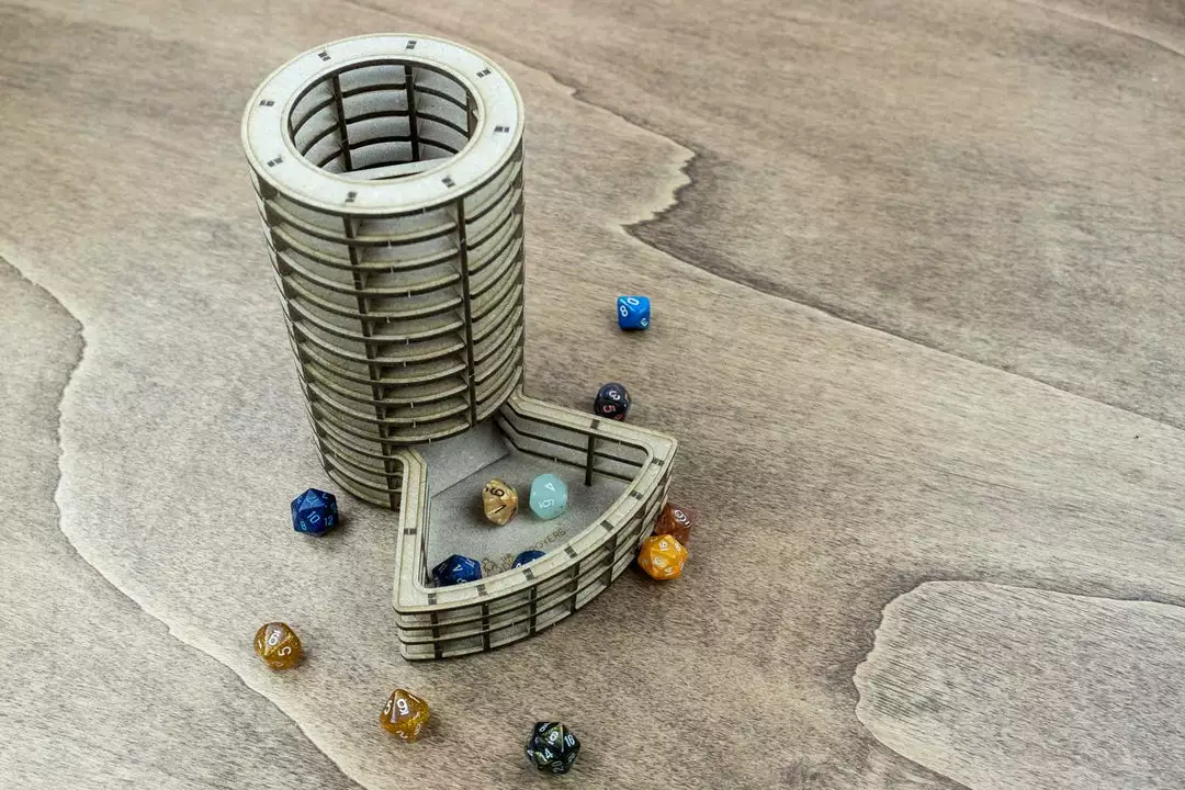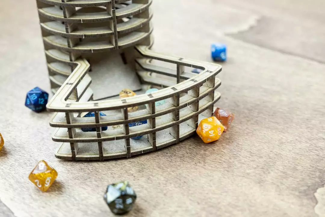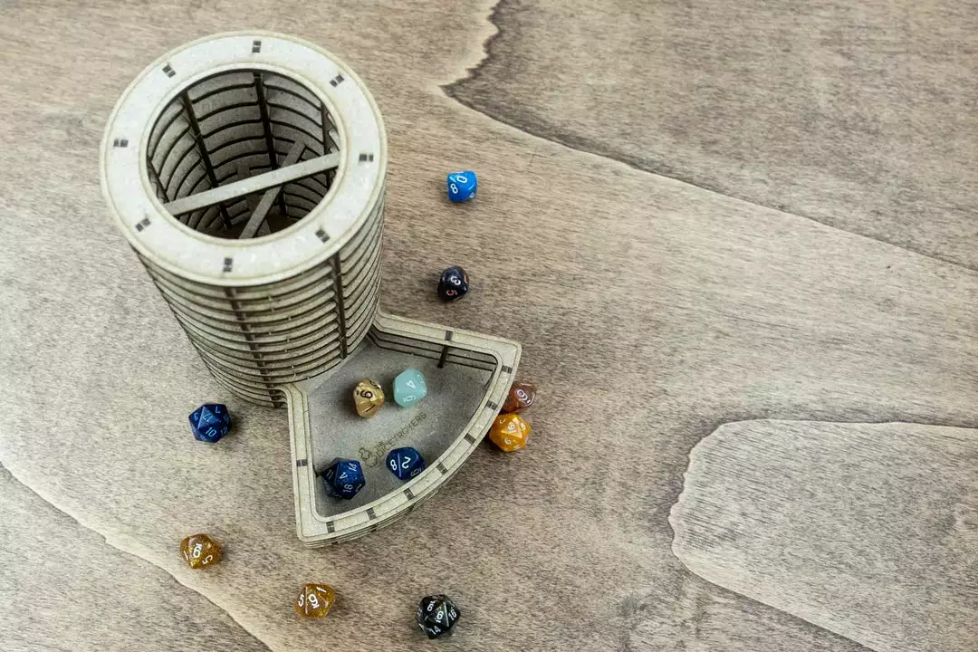 Designed as an accessory for all dice rolling games (tabletop and rpg), this dice tower allows a fully randomic and exciting dice throwing experience. The ideal table center lighthouse if you feel lost in a sea of dice. Together with The Dice Coast, it’s the ideal Peninsula for the perfect match!