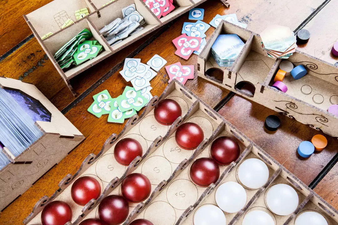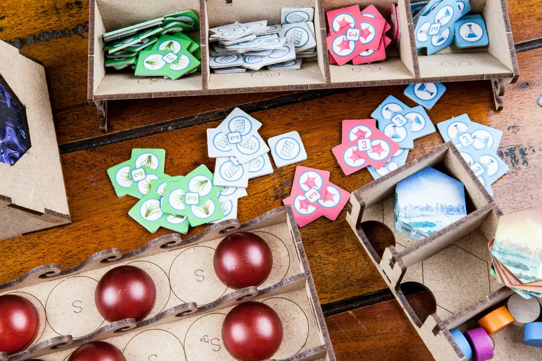• 1x card holder, with separate trays for eras, government cards, special cards and 3 coin special cards, characters;