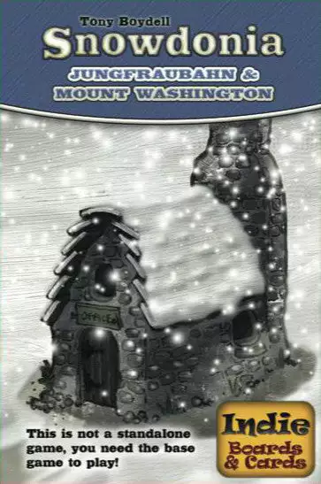 Snowdonia: Jungfraubahn & Mount Washington consists of two new scenarios for Snowdonia that take players away from the damp North of Wales and transport them (and their shovels) to more frozen climes! New mechanisms for the use of dynamite, new weather (snow) and new trains combine to provide a different playing experience. Jungfraubahn is a scenario for up to four players, with the yellow fifth player pieces being used as dynamite; the Mount Washington scenario handles up to five players with an amusing take on the “Surveyor”. (Let’s just say: “Wheeeeeeeeeeeee!”) This expansion is comprised of a rulebook and a single deck of 66 cards containing: