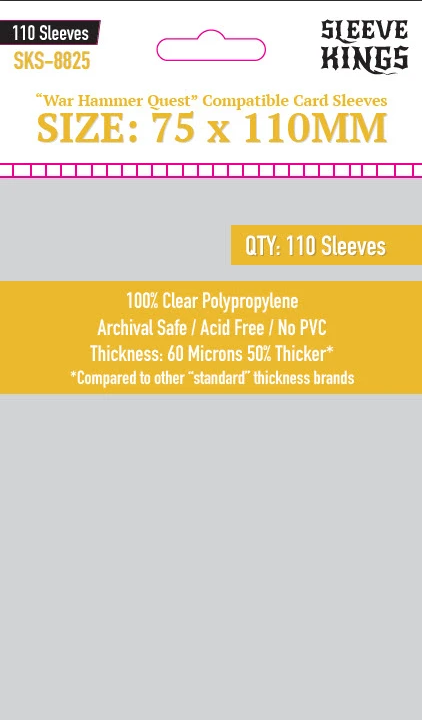These sleeves are compatible with War Hammer Quest cards. (75x110mm)