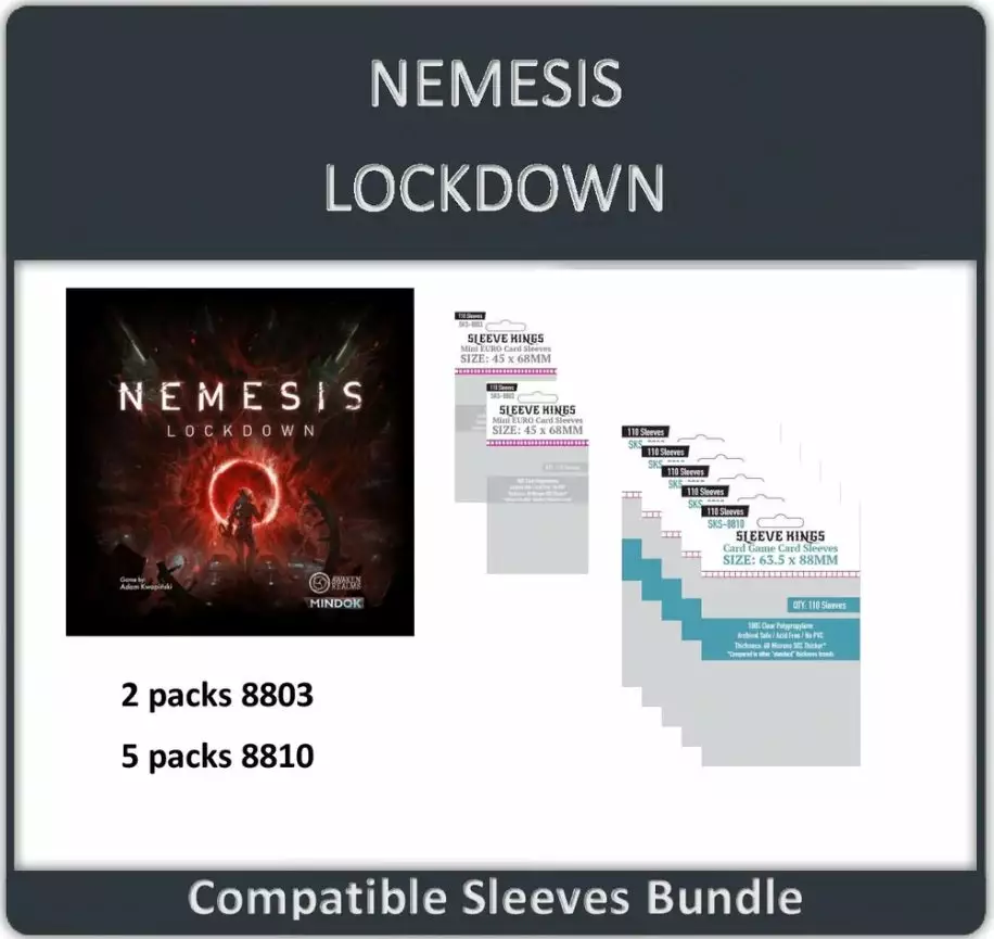 These are all the sleeves you need to sleeve everything for the game Nemesis: Lockdown Base Game. This bundle includes: