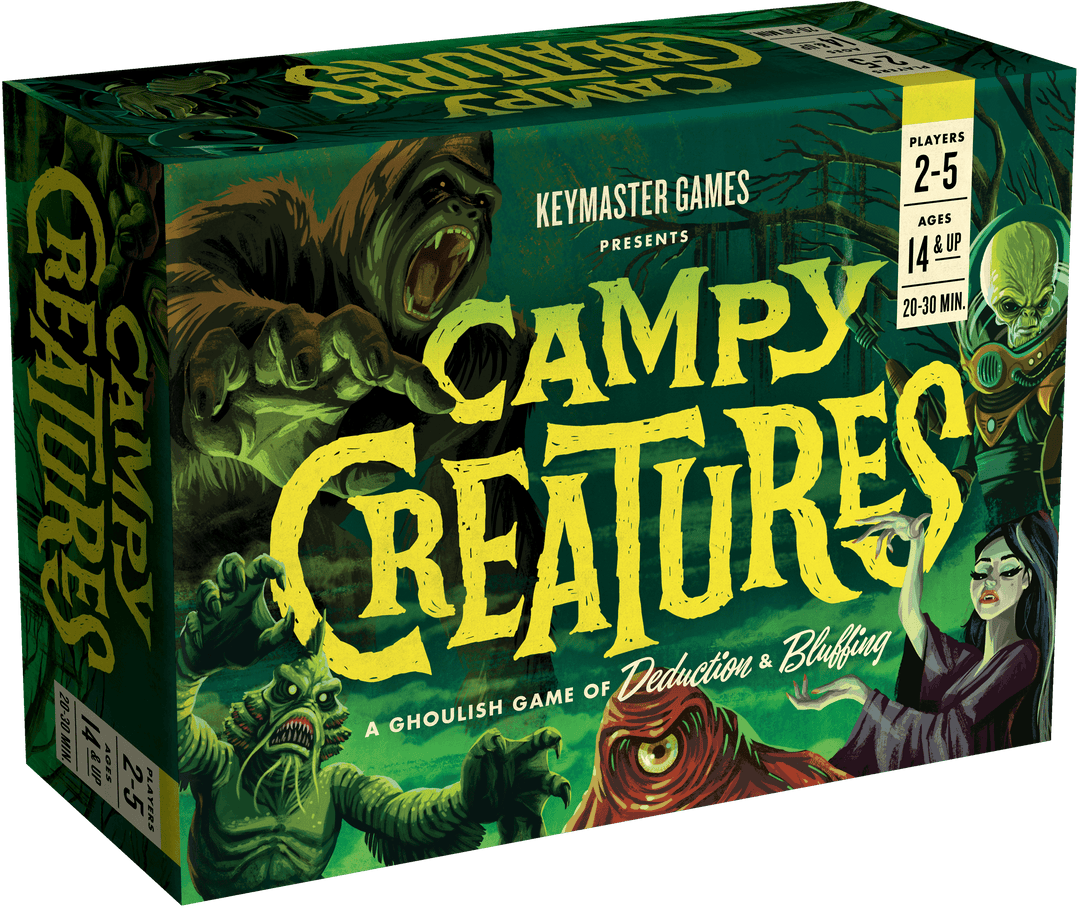 Campy Creatures is a ghoulish game of bluffing, deduction, and set collection for 2-5 players. Players begin each round with the same hand of creatures. Their goal is to capture valuable mortals by outguessing their opponents with the creatures they play. Each player has perfect information at the start, so knowing what a person might do in a particular situation is key.