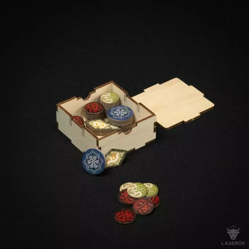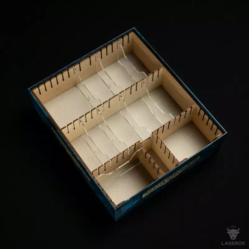 Store all your cards organized in one box instead of plastic bags or just freely floating around. Our Arkham Edge Organizer – sister to our Collector’s Card Crate — helps you organize that huge amount of cards in an easy way. Acrylic dividers help you to keep your cards separated and sorted.