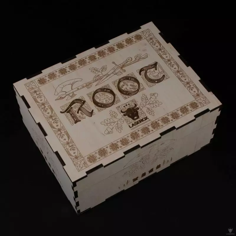 - holds Root base game, The Clockwork, The Riverfolk, The Vagabond Pack, The Underworld and The Exiles and Partisans Deck expansion inside